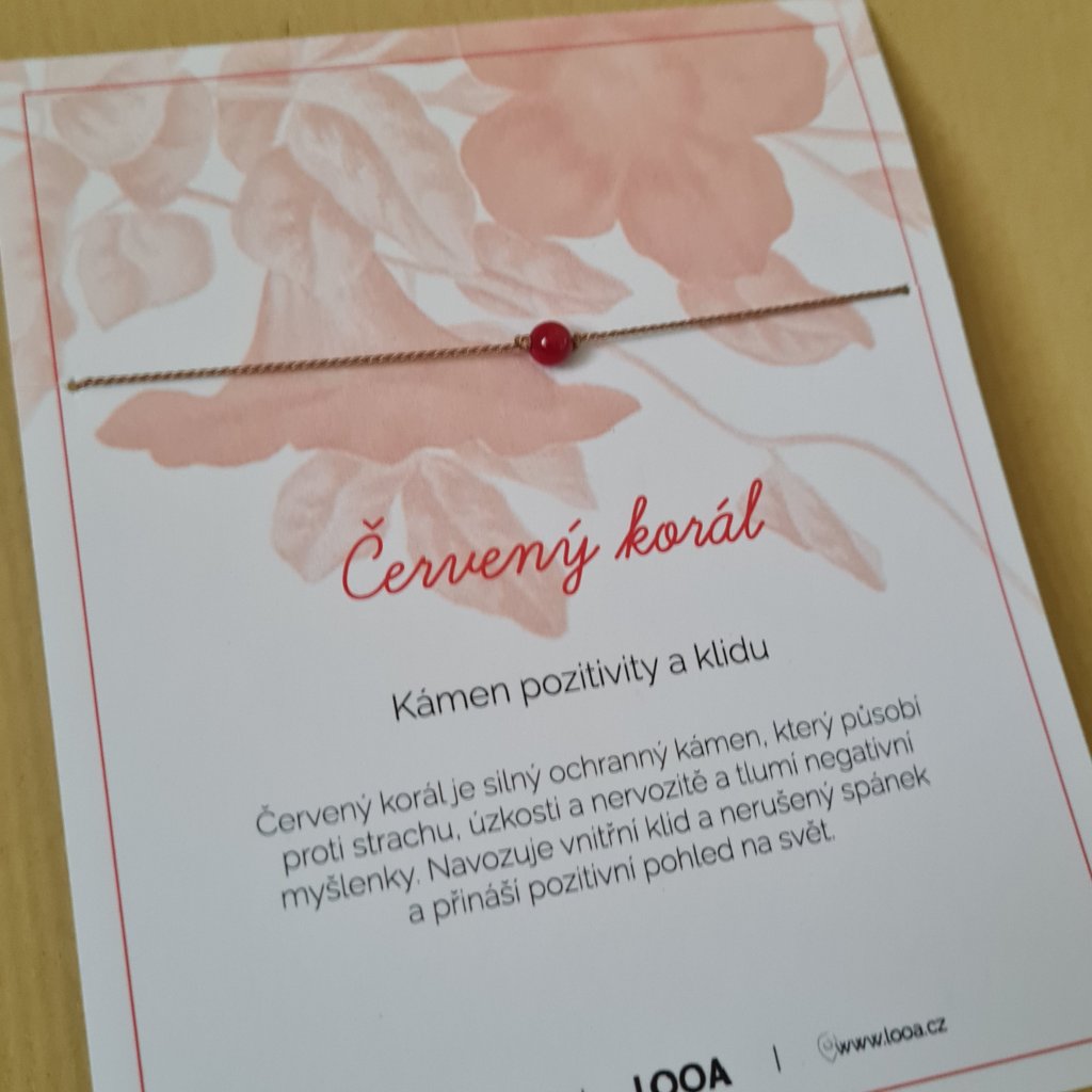 Červený korál, kámen pozitivity a klidu- poslední příležitost, hedvábí/stříbro
