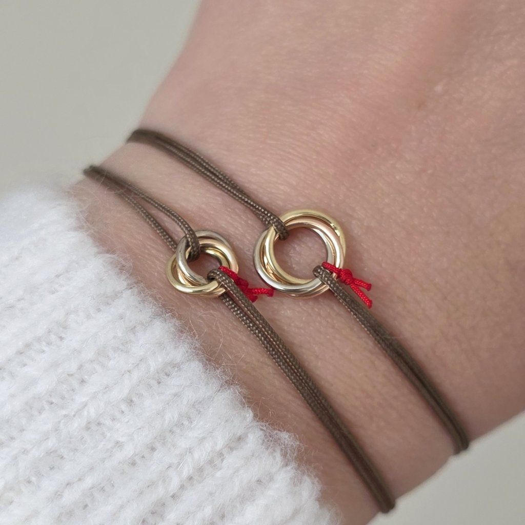 Tři spojené kroužky mini, kolekce uzlík štěstí a ochrany - náramek